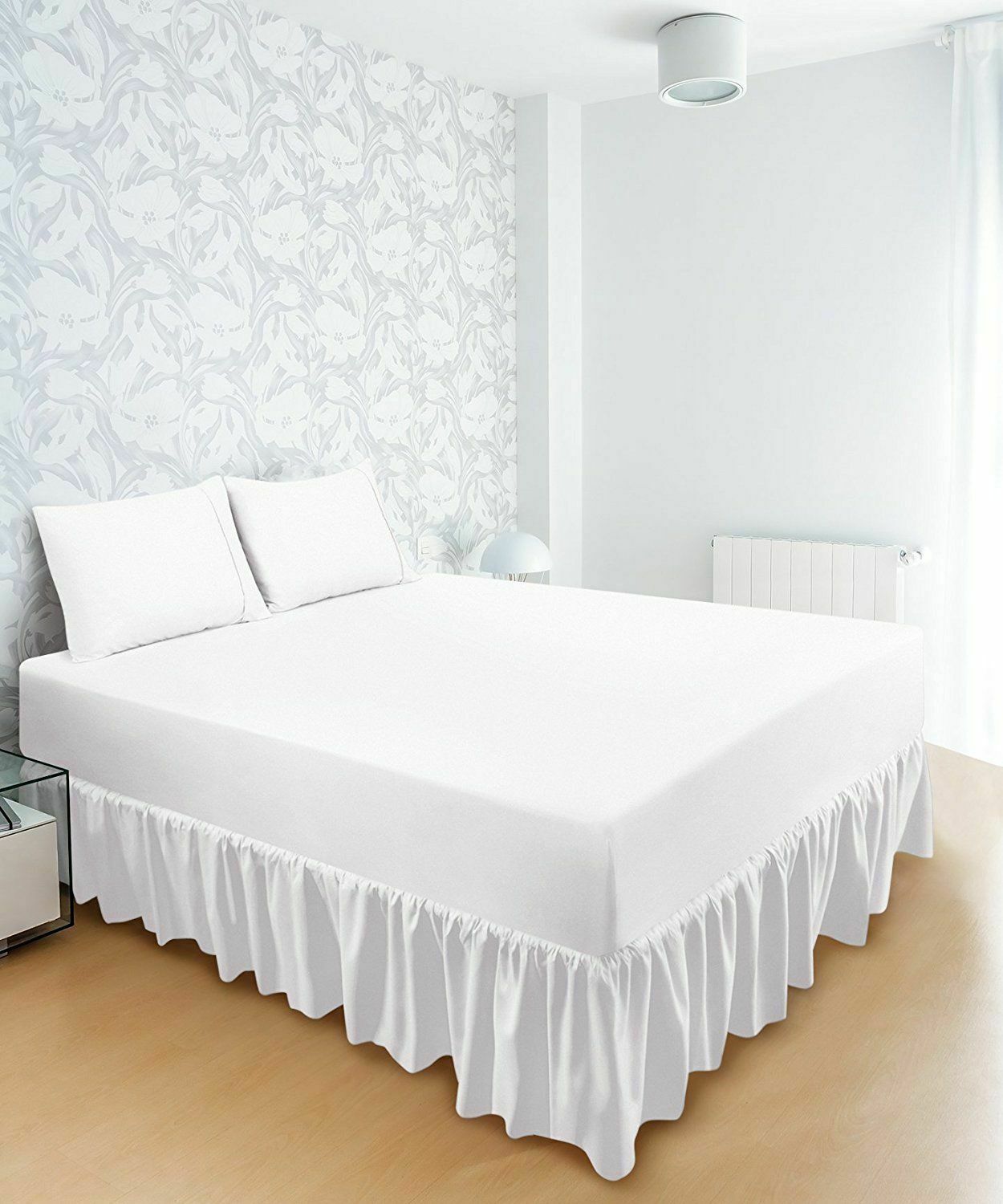 Some dust ruffles even come in three separate pieces and are pinned directly to the gathered bed skirts are bunched together into neat little ruffles and are another popular style that is easy to track down. Easyfit™ solid twin/full ruffled bed skirt. Some people call these elastic dust ruffles fitted bed skirts. Rimela bed skirt wrap around elastic dust ruffle solid color wrinkle and fade resistant with adjustable elastic belt easy to install white for queen size 15 inch drop. Layered bed skirts can have two fabrics the same length or tiers of different lengths.
